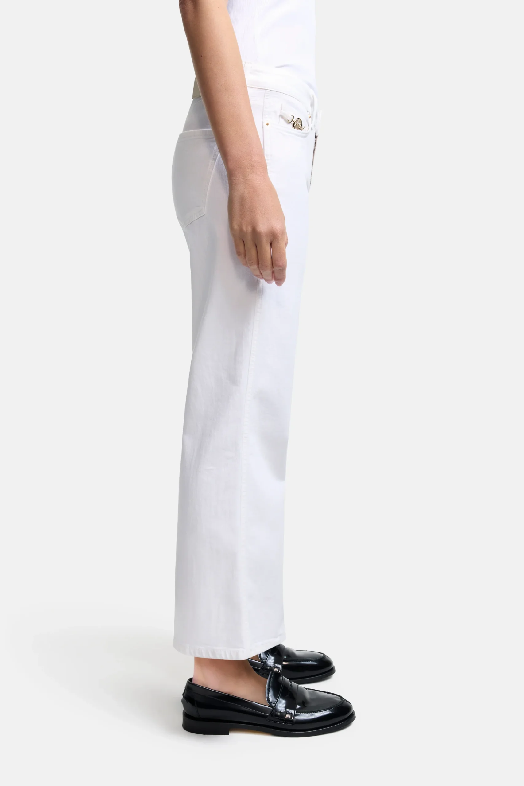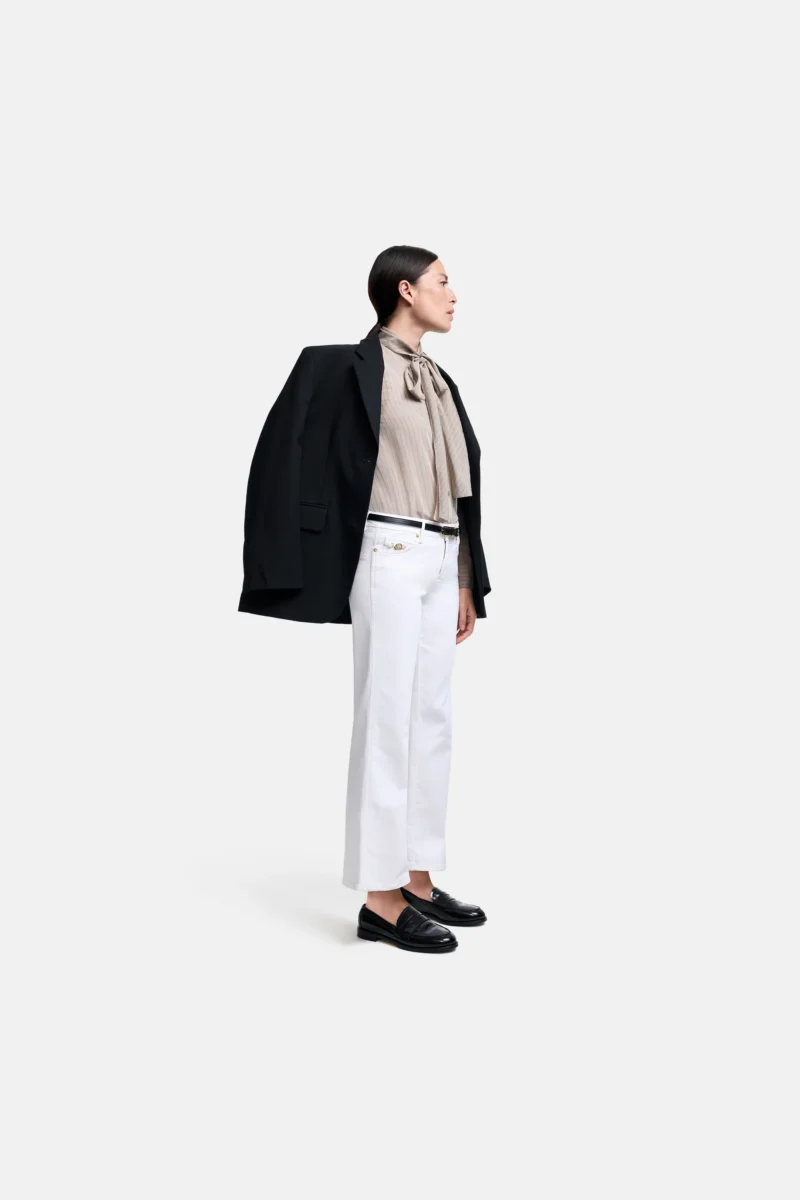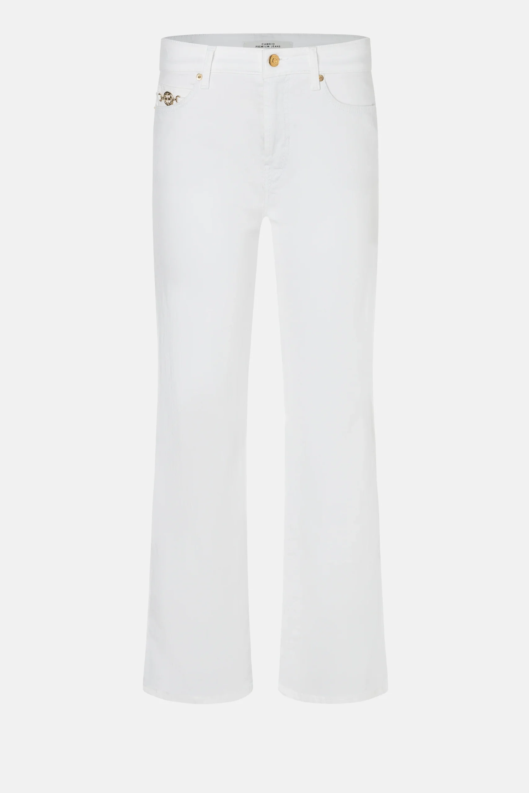 Cambio bukser model Francesca – hvid, denne smarte buks er med svaj og er lavet af super-stretch denim som imponerer med kærlige detaljer, såsom det gyldne element på forlommen. buksen har 5 lommer og er i længde 28