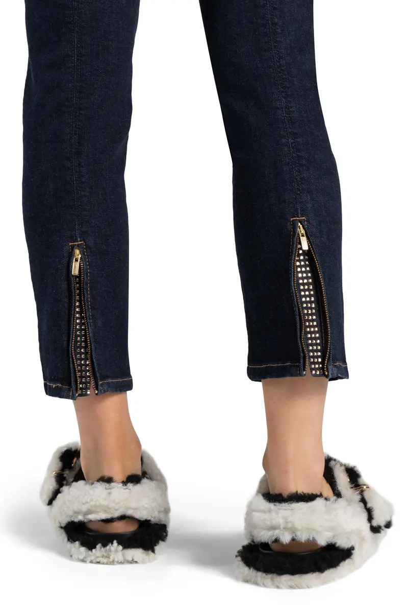 Cambio bukser Piera denim, en smart buks med 4 lommer og lynlås bagpå forneden med sten, buksen er normal i størrelsen og har længde 28.