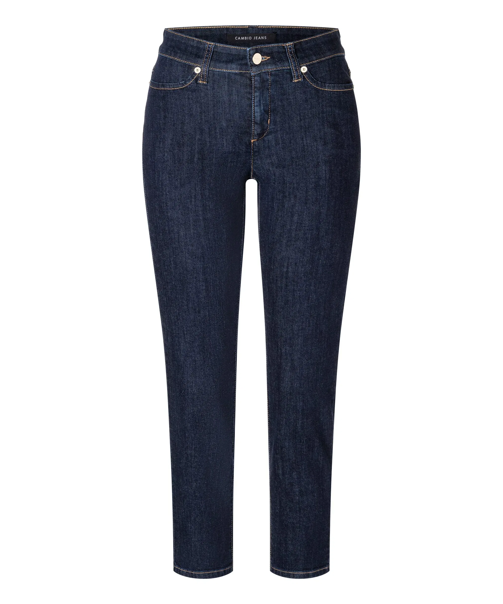 Cambio denim bukser Piera short, en smart buks med 4 lommer og lynlås bagpå forneden, buksen er normal i størrelsen og har længde 28.