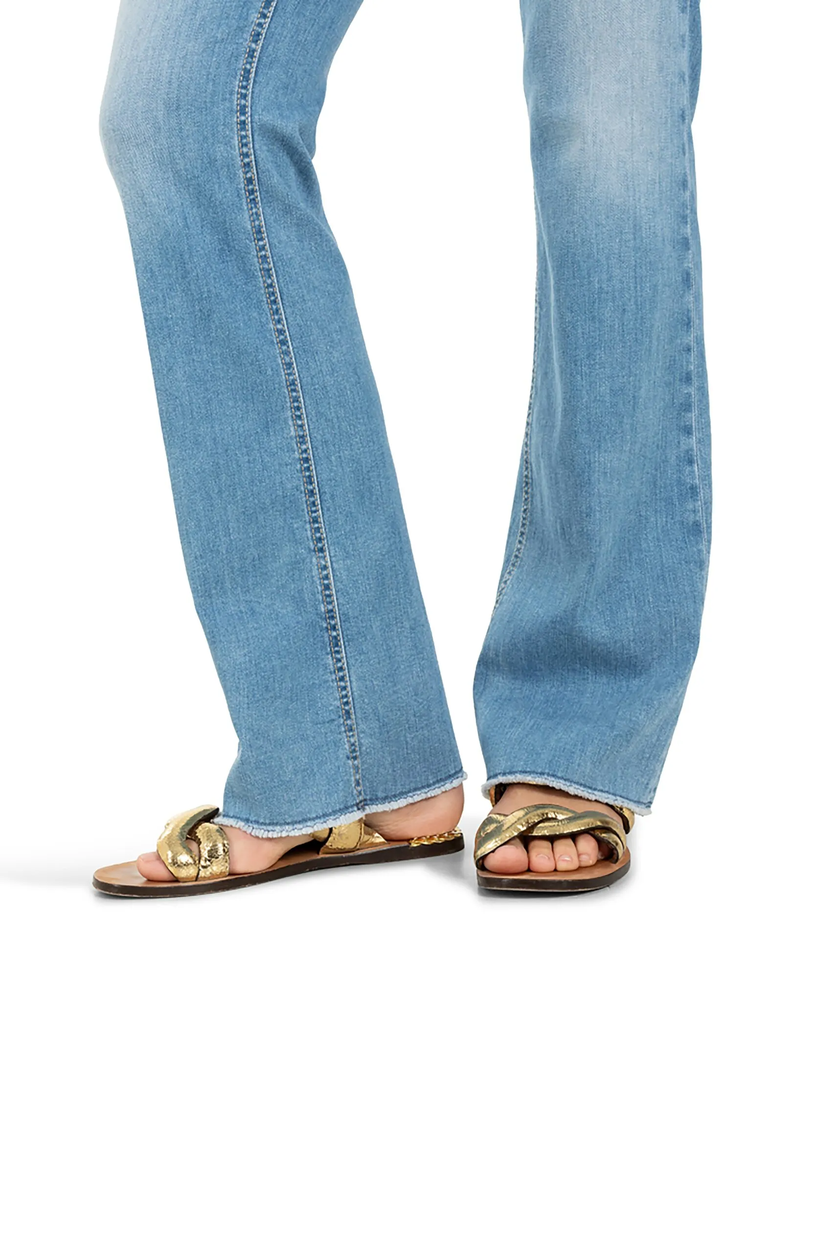 Buksen er med udvidet ben-silhuet i fuld længde. Denim er lavet af bomuld og giver komfort og perfekt pasform takket være elasticitet.