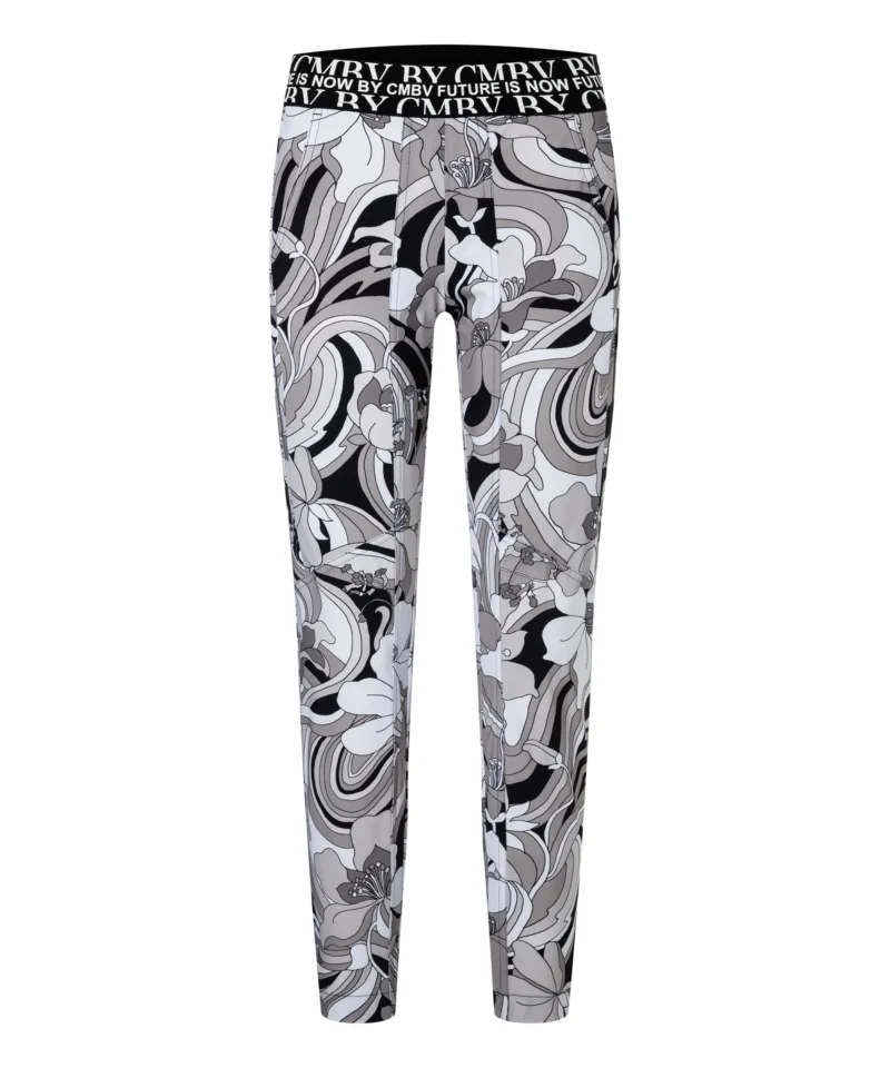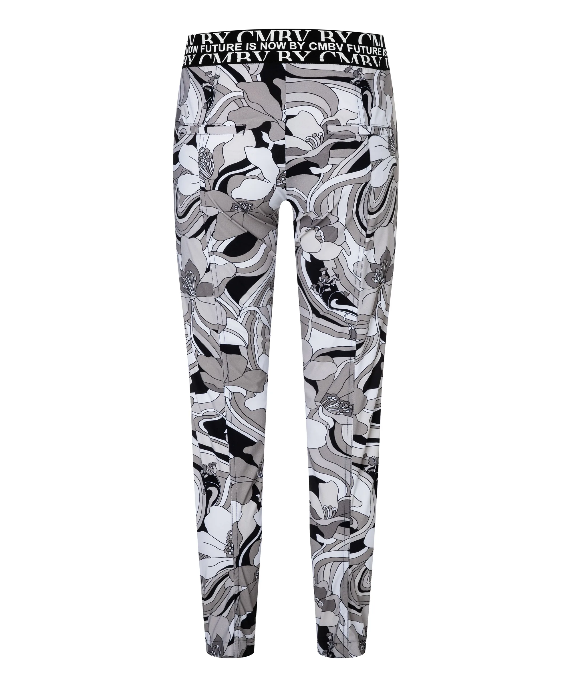 Cambio Jorden pure, Cambio bukser i farverne sort-grå-hvid, en lækker blød kvalitet med mange smarte detaljer, såsom skrå lomme, paspolerede lommer bagpå og bred elastik i linningen. Buksen er i længde 29 og rummelig i størrelsen.