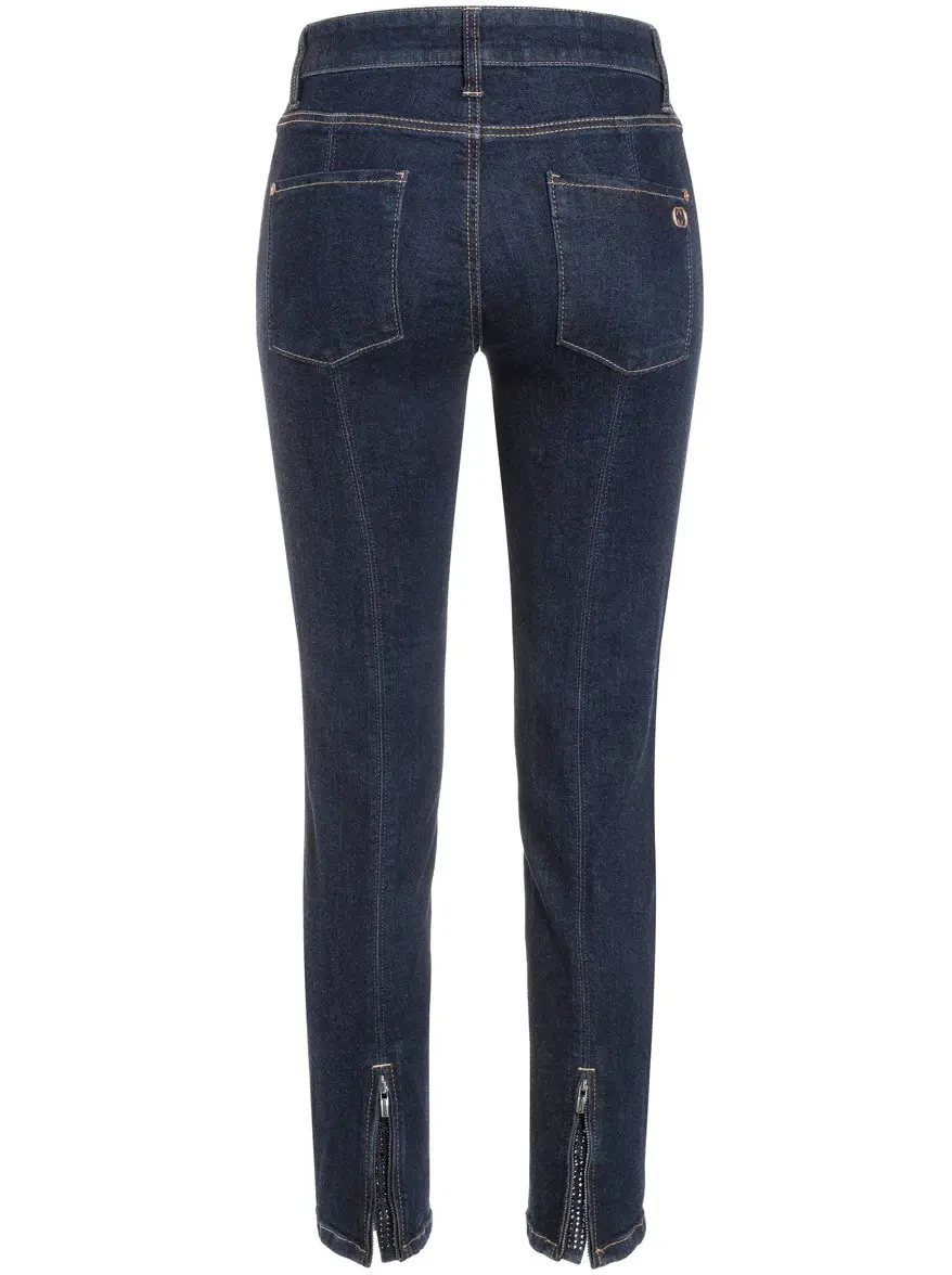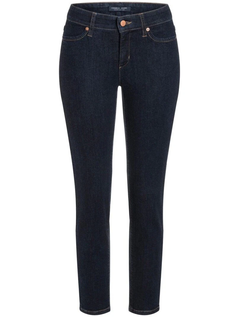 Klassiske, mørkeblå jeans er et must i enhver kvindes klædeskab! Skræddersyede, afsmalnede ben med lynlås i ryggen og fleksibel, behagelig bomuld med tilsætning af elastan er fordelene ved Cambios Piera-bukser. To sliplommer bagpå, to patchelommer, lynlås og en knap.