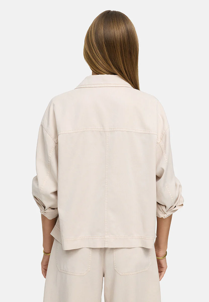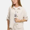 Catnoir jakke – beige. Dette er en smuk beige jakke, perfekt til et let lag til forårs- og sommervejret. Denne jakke har en standard krave, knapper til lukning, lommer på brystet, lange ærmer, som kan rulles op med en knaplukning.