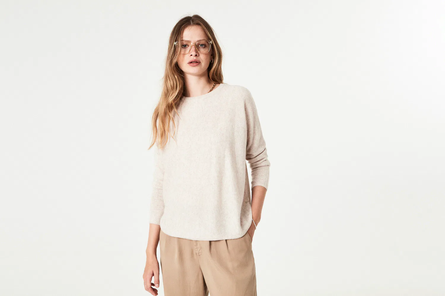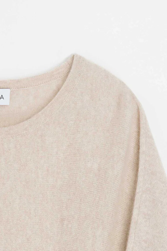 Davida Curved Cashmere sweater i light beige