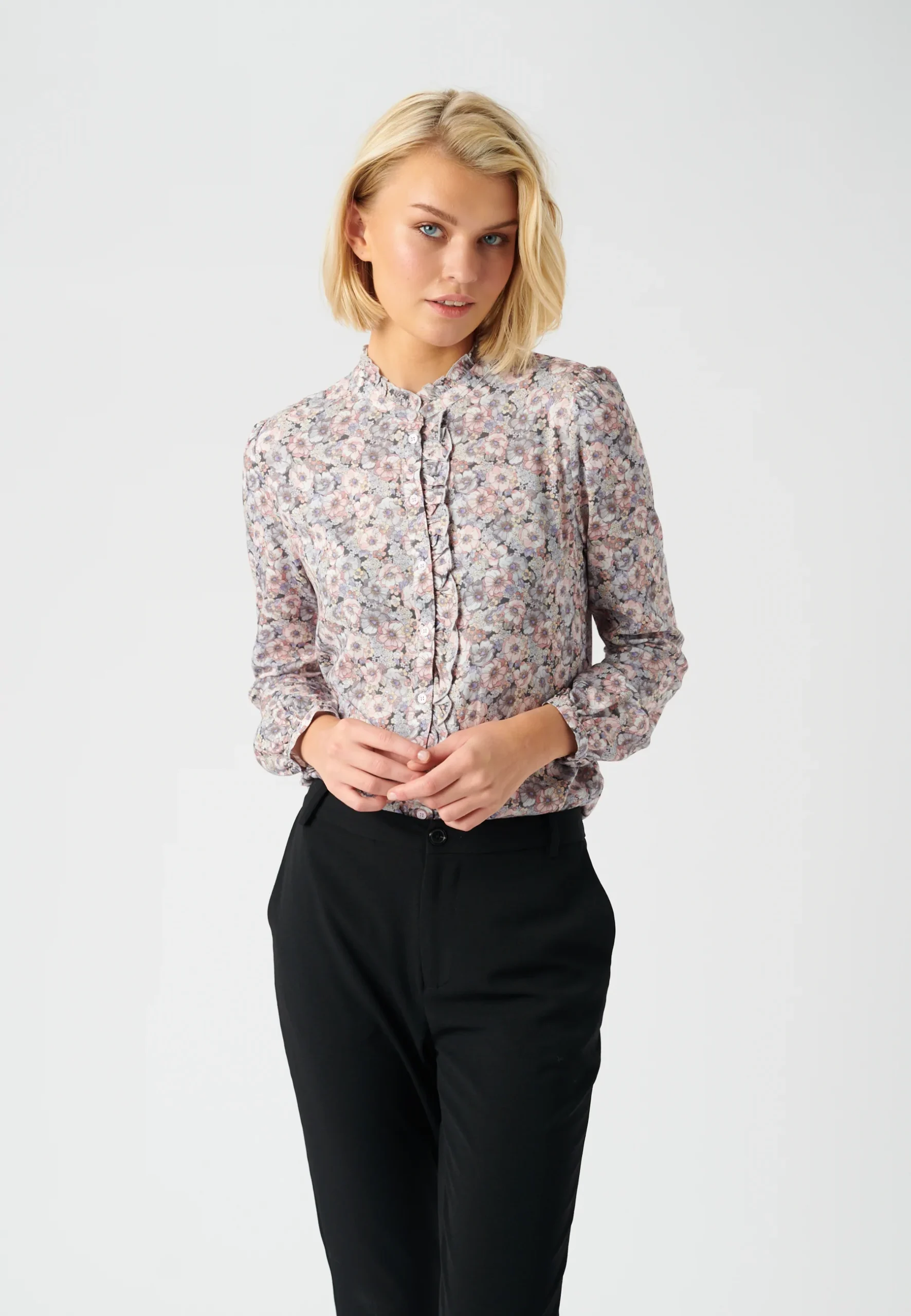 Dea Kudibal bluse Jodie (V)-Passion Gobi, lækker bluse der gennemknappet i et flot mønster med flæser i halsen og ned foran. længde 66 foran og bagpå i str. S, regular fit