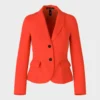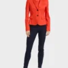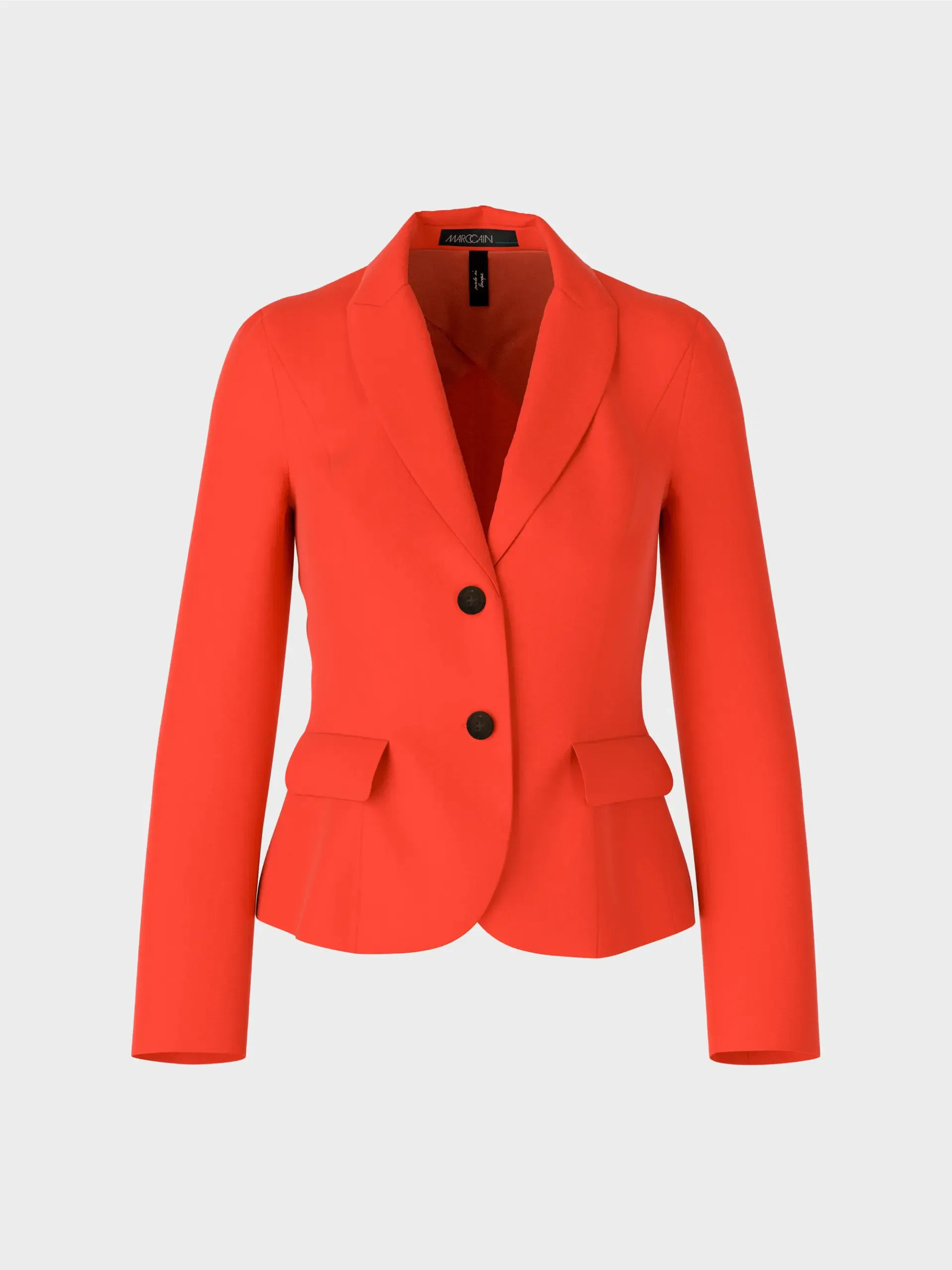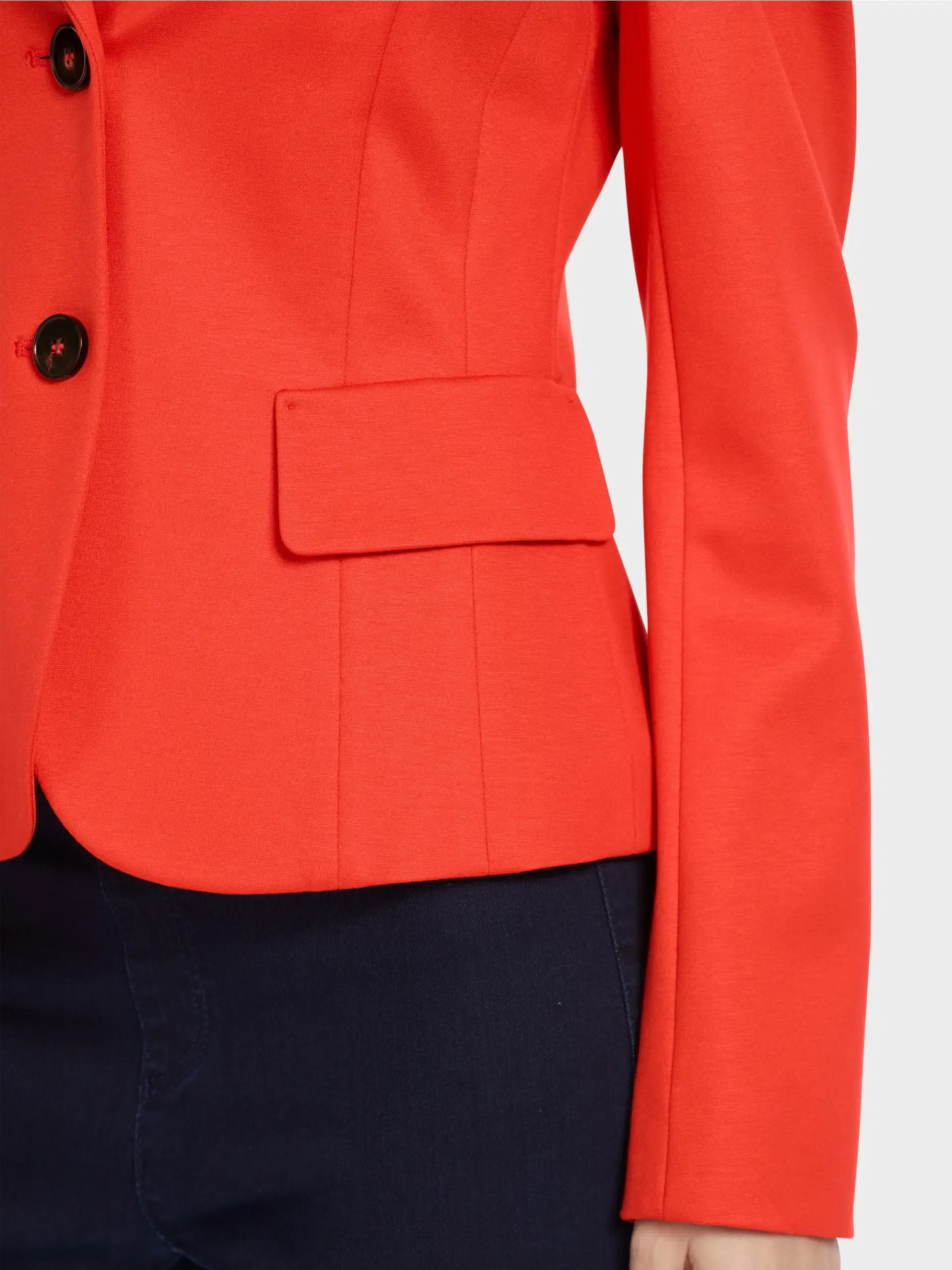 Marc Cain Blazer Campari, en stilfuld figursyet jakke i jersey der er meget behagelig at have på, jakken har foer i ærmet og kan dresses op og ned.
