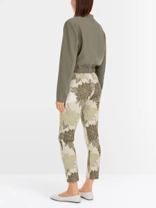 Marc Cain Collections SYDNEY jersey bukser. Disse tætsiddende bukser er behagelige at have på hele dagen. Deres stil fuldendes af et elastisk taljebånd. Benene er 7/8-længde og bevarer deres form med syede folder.
