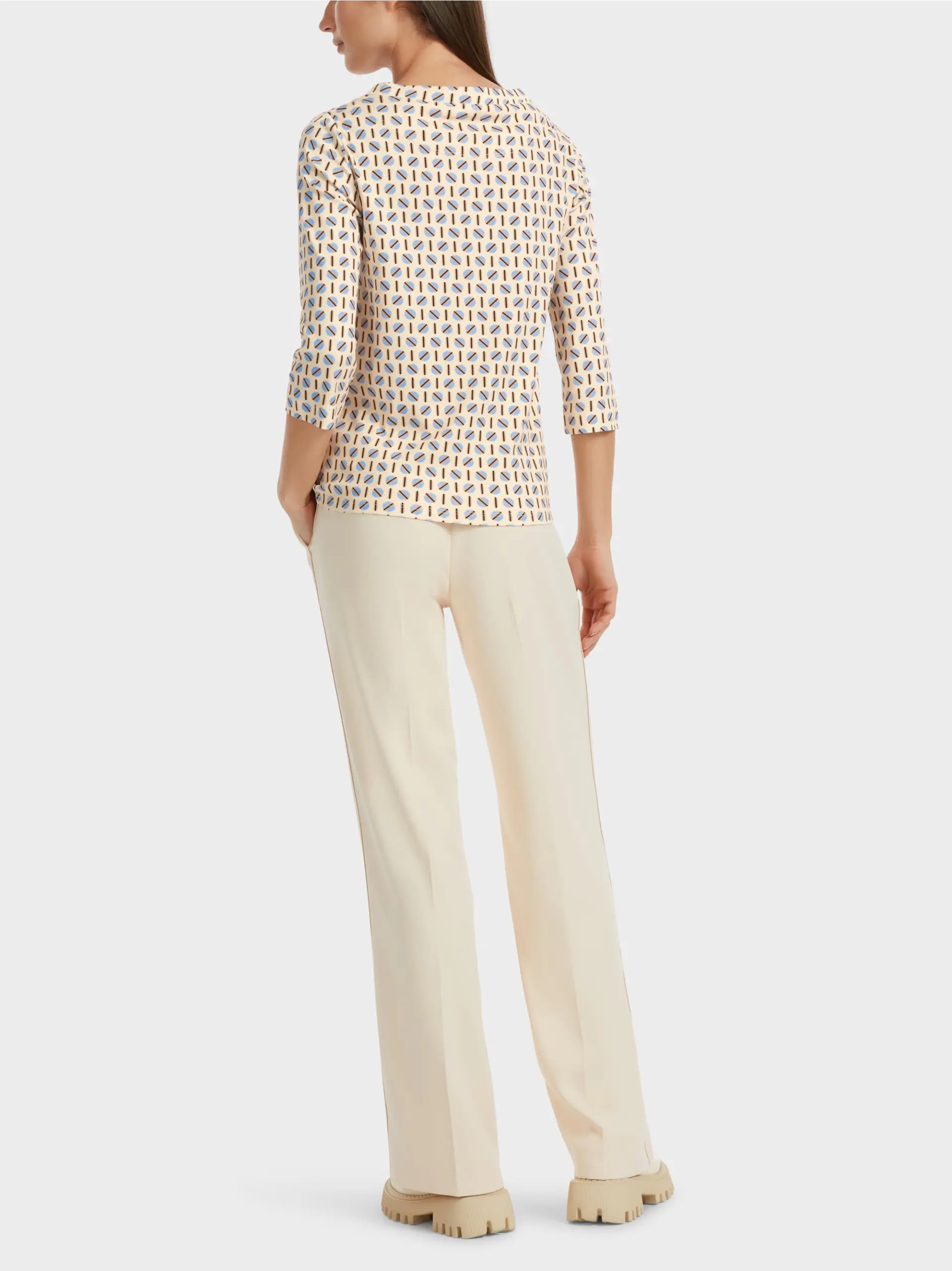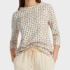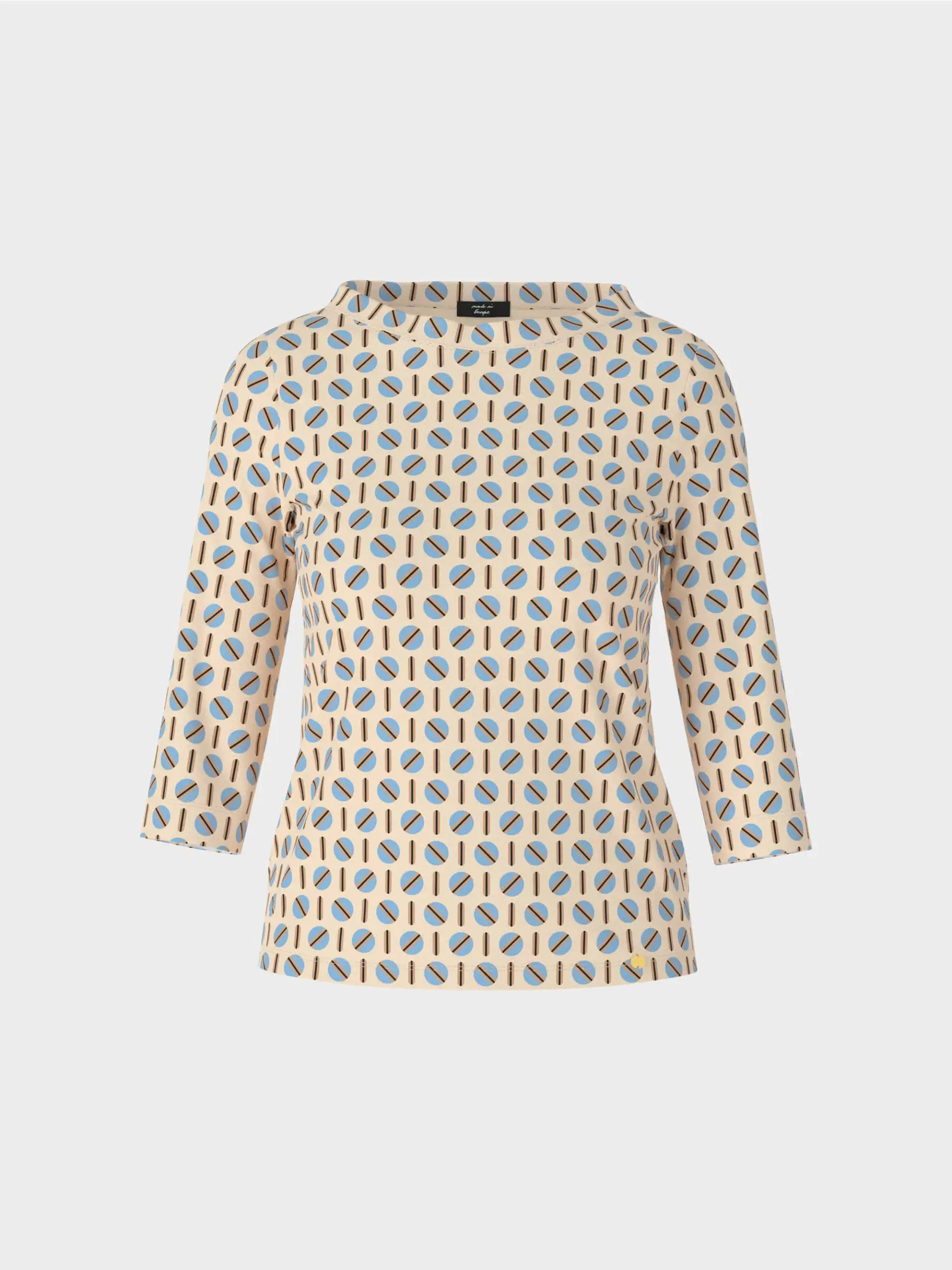 Marc Cain Collections T-shirt, figur syet T-shirt i bomuld med elastan. Det grafiske print giver denne T-shirt et ekstravagant touch. Blusen har trekvartlange ærmer og rund bådhals. normal i størrelsen