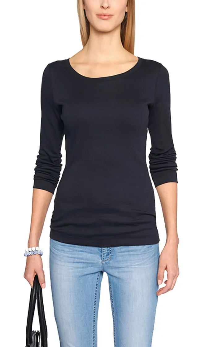 Marc Cain Essentials Basic langærmet t-shirt midnat blå