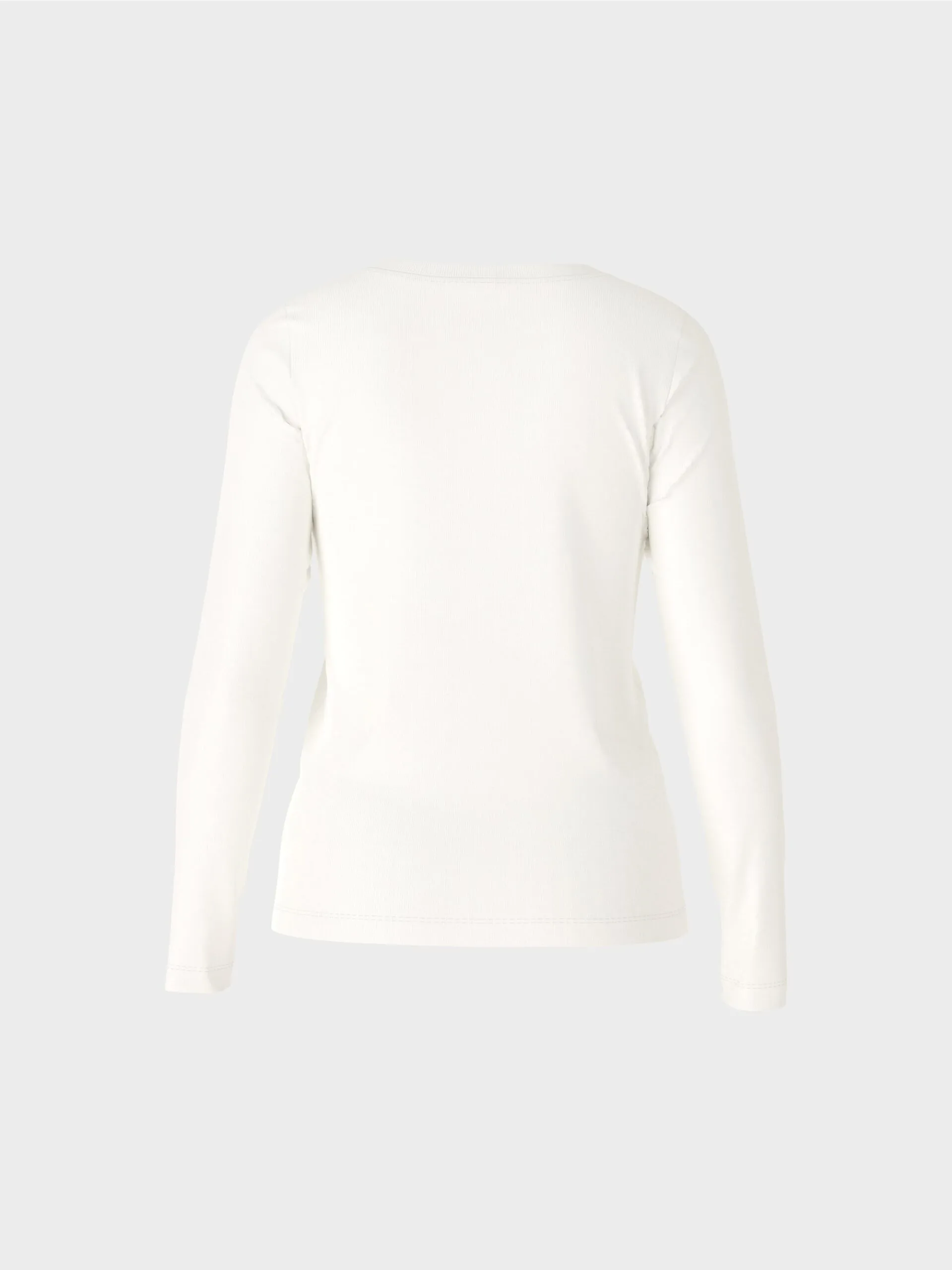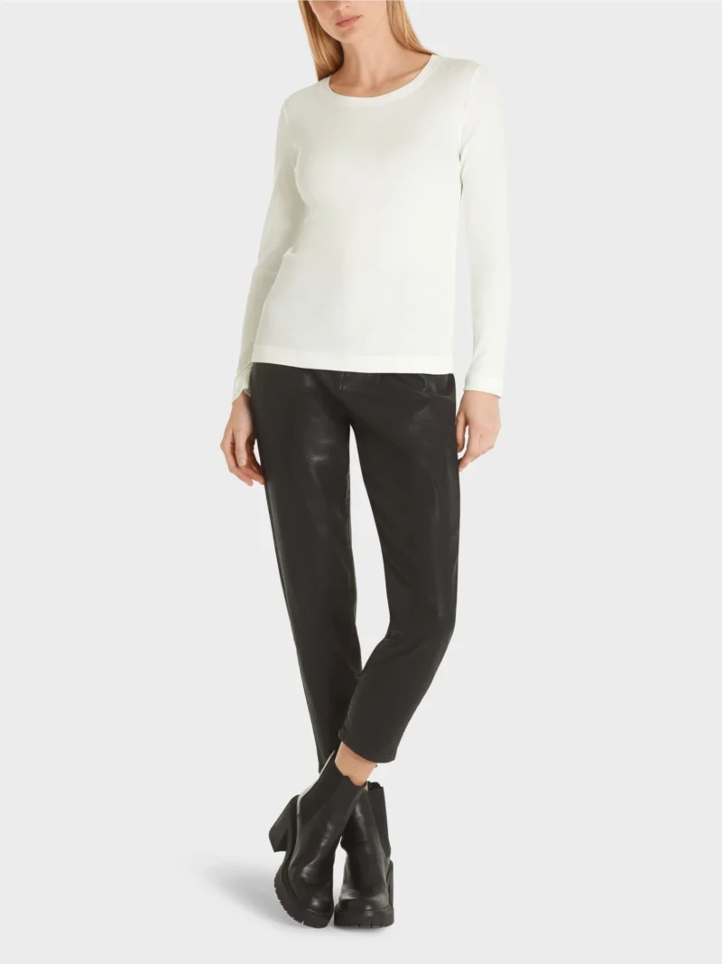Marc Cain Sports basic T-shirt råhvid, en blød T-shirt med rund hals i ribbet bomuld og elastan , blusen har lange ærmer og er meget behagelig at have på. Blusen er en smal model