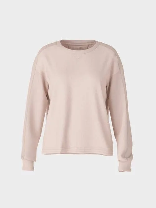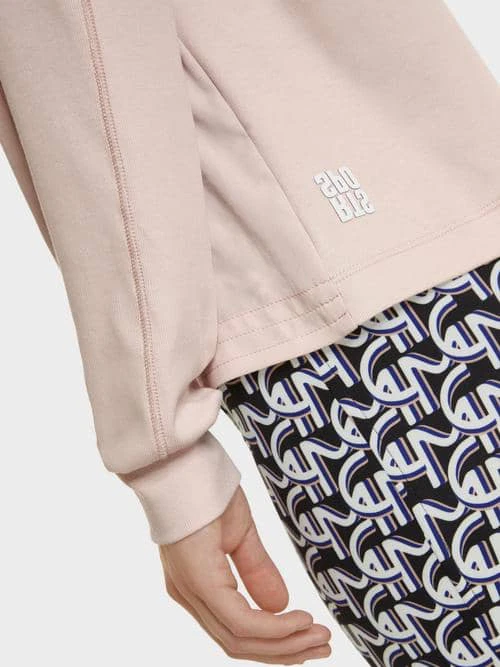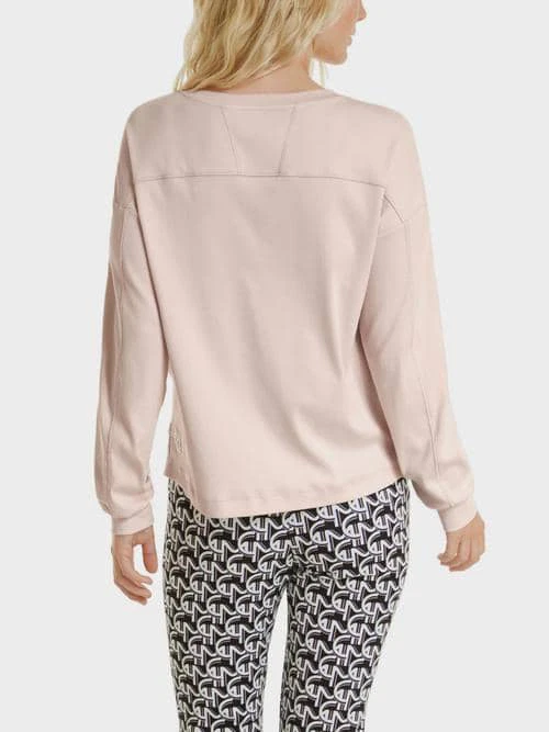 Marc Cain Sports bluse i mixed materiale, blusen er med rund hals og lange ærmer med ribkant i en lys rosa farve,normal i størrelsen og Loose fit