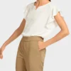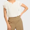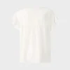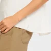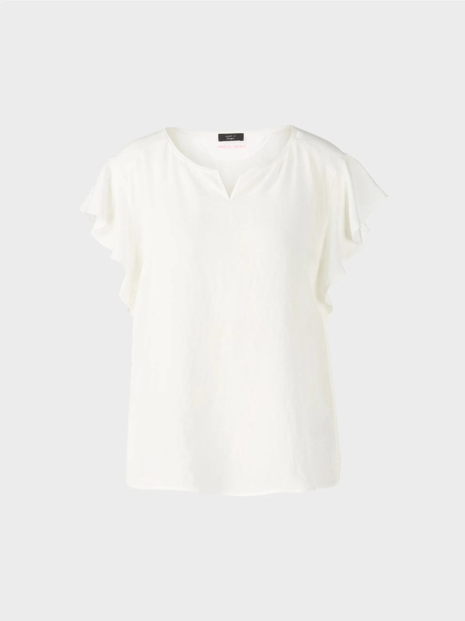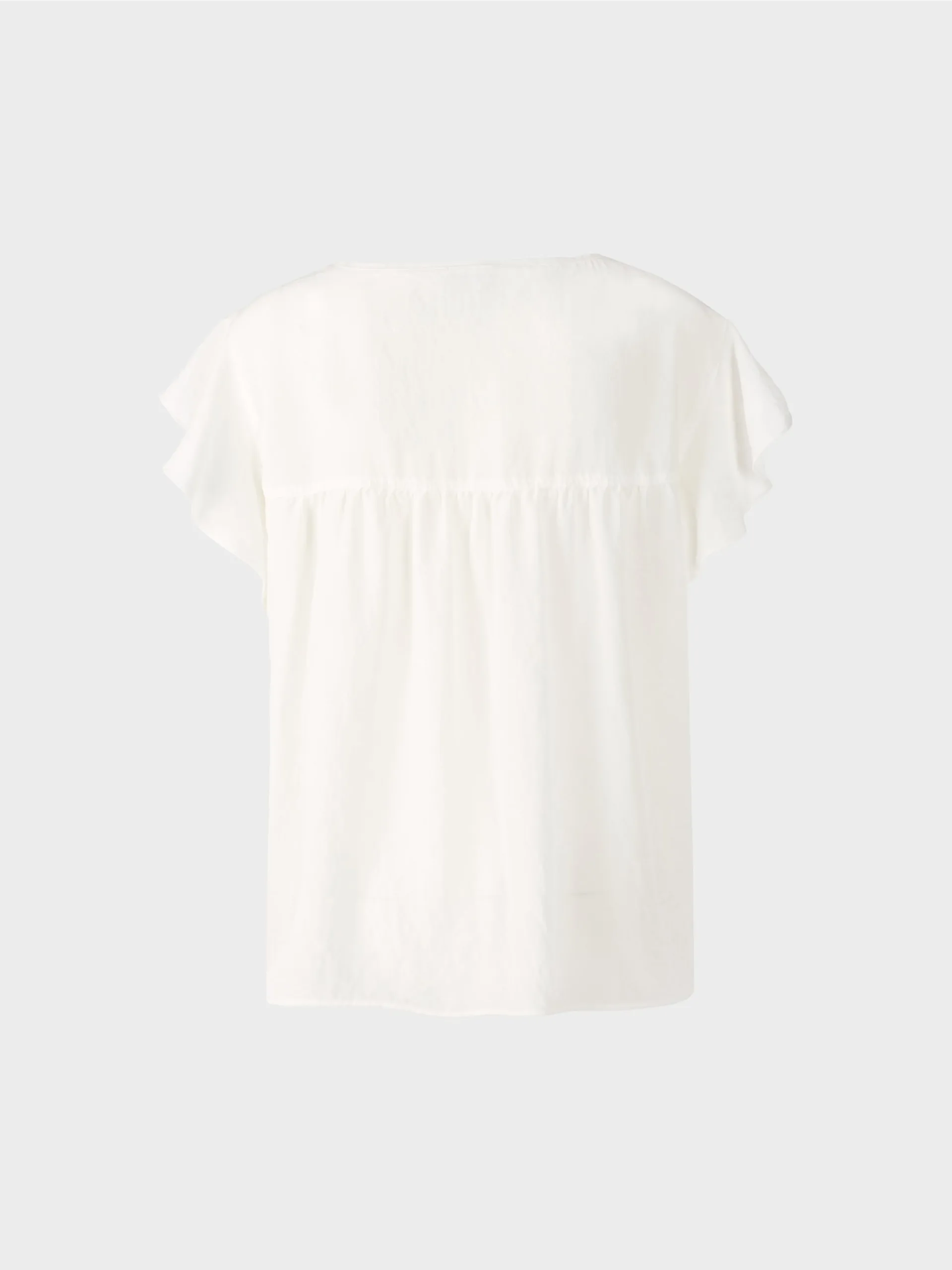 Marc Cain Sports bluse i råhvid, en romantisk bluse med krølle effekt som giver et let og luftigt look til toppen. Legende detaljer inkluderer flæser på ærmegab og rynke effekt på ryggen. Blusen er rummelig