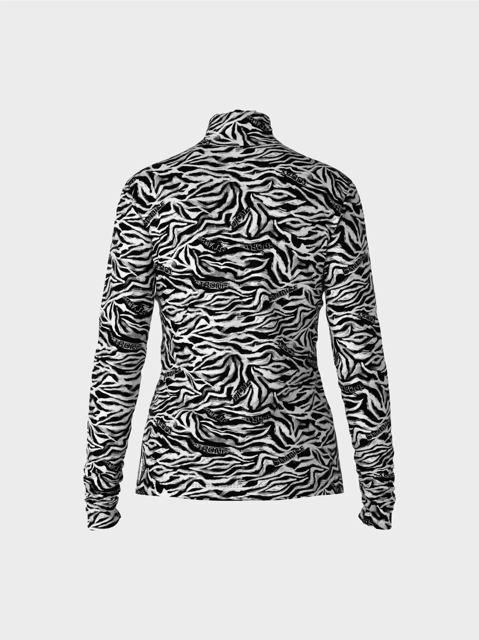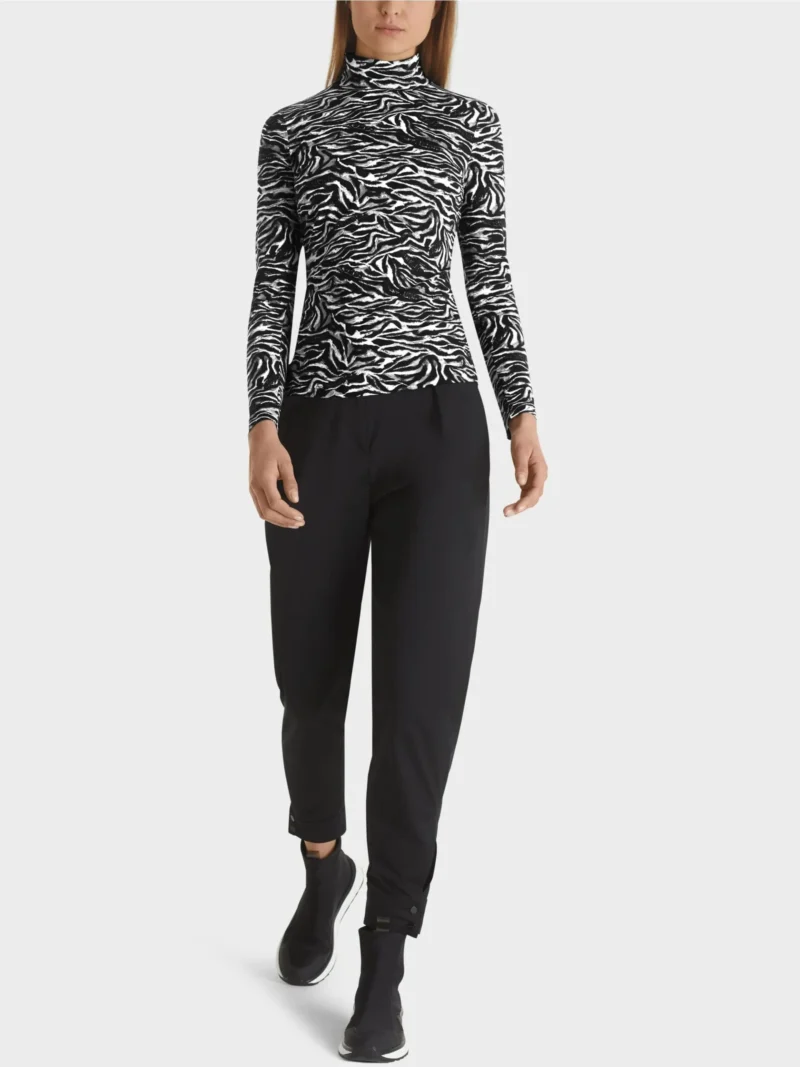 Marc Cain Sports bluse med zebra mønster, lækker tynd bluse med lange ærmer og turtleneck, blusen er normal i størrelsen.