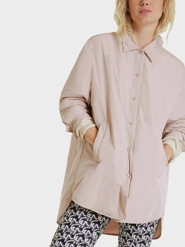 Marc Cain Sports Jakke sandcastle, en let overgangs jakke der er behagelig at have på, jakken har trykknapper, krave og lommer. Jakken er længere bagpå og rummelig i størrelsen.