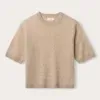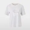 Marc Cain Sports jersey t-shirt i grå. Denne jersey t-shirt er lavet af 100% bomuld, en strikkede stribede kant i halsudskæringen, korte ærmer og en løs pasform. Modellen er 179 cm og bruger str. N3/38
