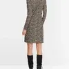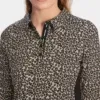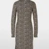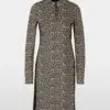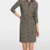 Marc Cain Sports kjole- soft moon rock, kjole med Leo-print – kort, tætsiddende og lavet af elastisk jersey. Sporty elementer: polokraven og indsatserne foran. Sidstnævnte får stilen til at se slankere ud. Et cool og ukompliceret stykke til fest og fritid. Modellen er 179cm og bruger str.38.