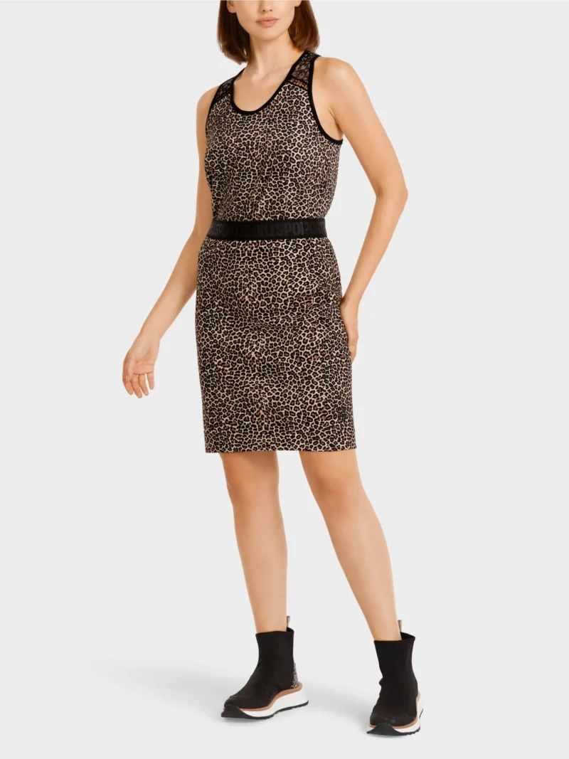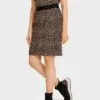 Marc cain Sports nederdel med leopard print, denne tætsiddende nederdel er lavet af elastisk  jersey stof med enestående komfort og bred elastisk linningen , nederdelen er foret. Modellen er 179 høj og bruger str. 38
