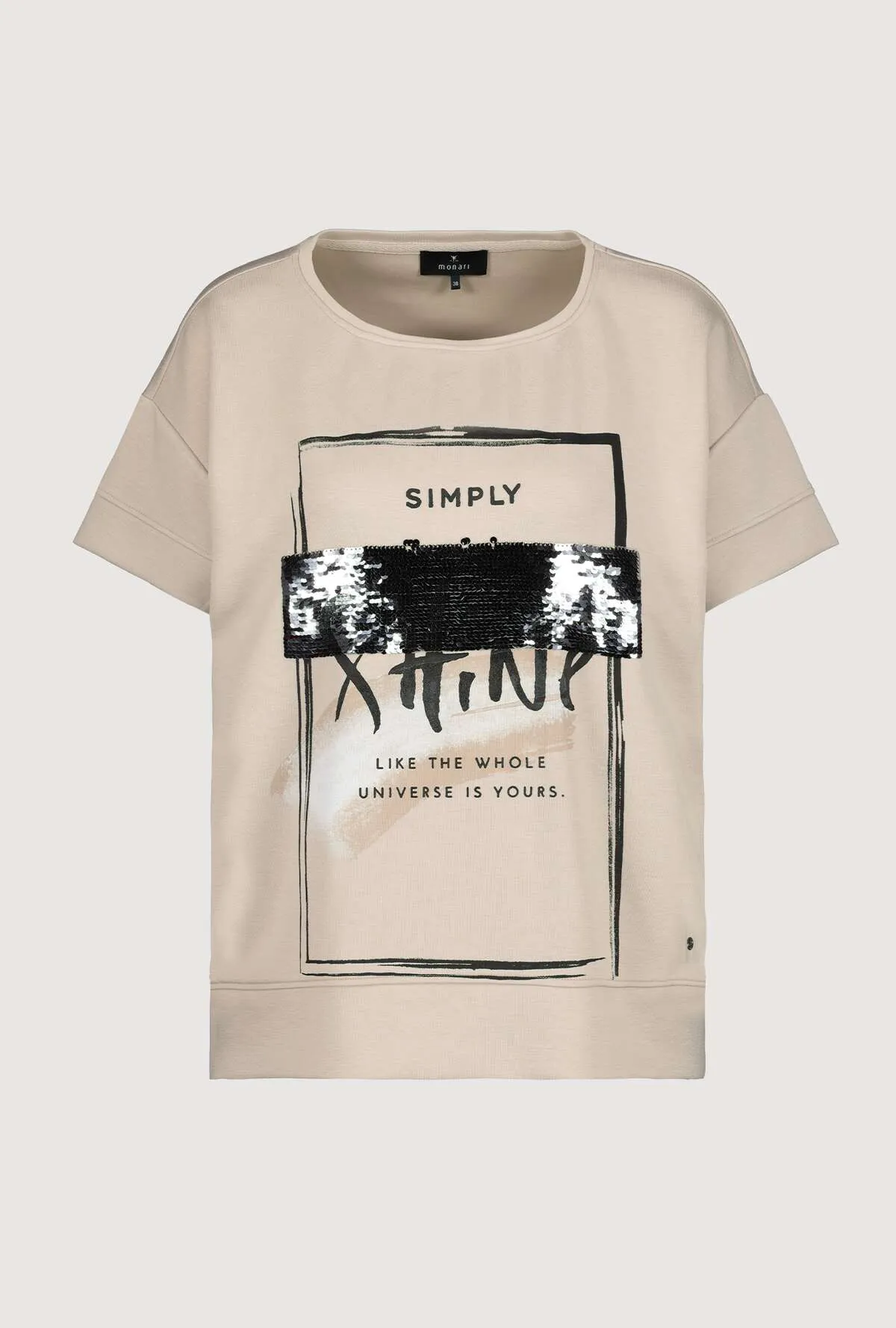 Monari T-shirt med pailetter og tryk sand