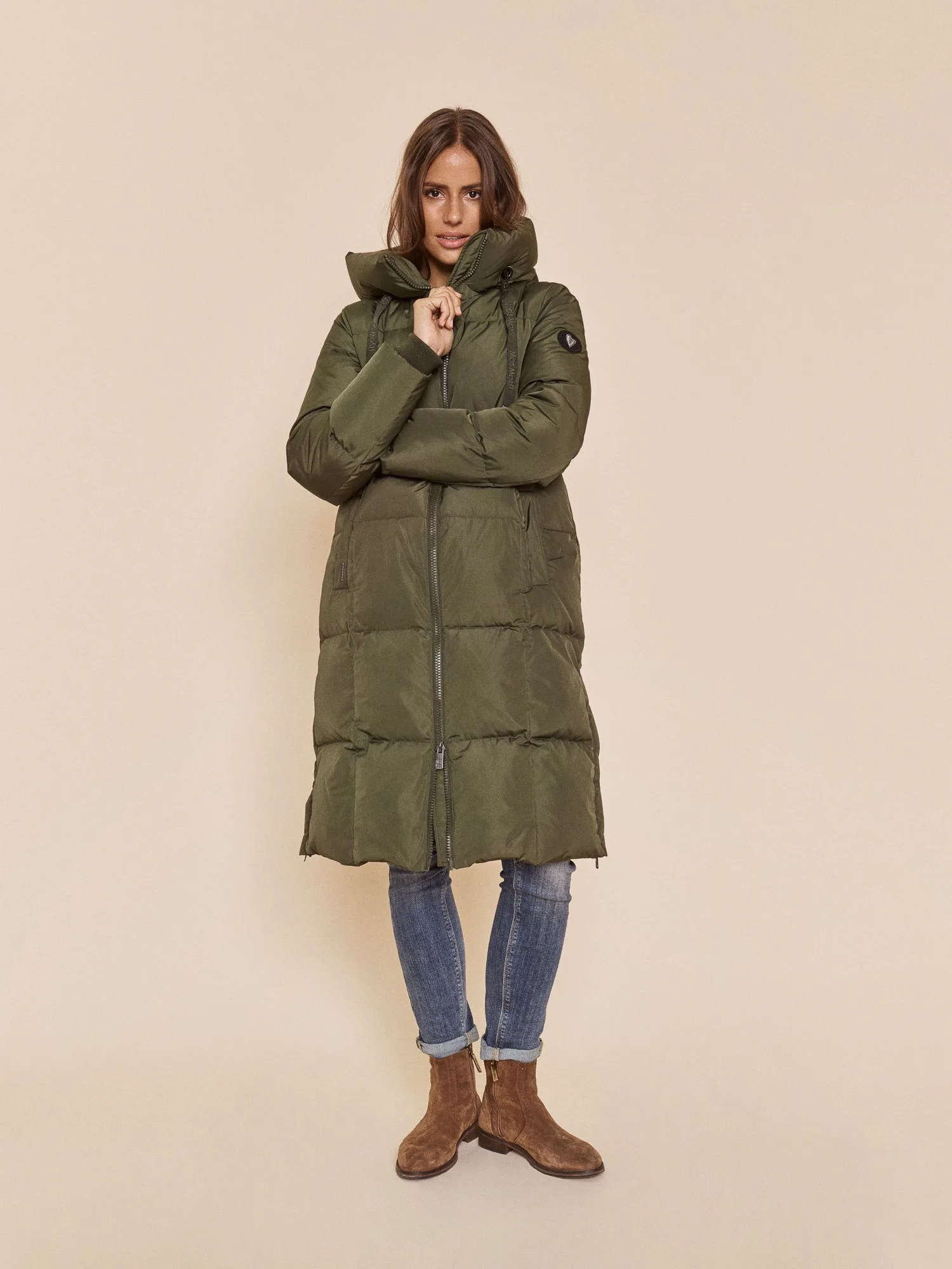 Hold kulden ude med vores elskede Nova frakke. Denne sæson, har den fået en upgrade i form af ternede paneler i blød dun. Men bare rolig, den høje krave med snøreluk og hætte sørger stadig for at du stadig kan holde varmen. Den stærke lynlås kan åbnes fra bunden, og giver dig dermed mere fleksibilitet på farten. En anden fed detalje er lynlåsene i siden, som er gode til dig, der cykler på arbejde. Frakken har et let feel takket være det ansvarligt producerede dun. Brug den til alt!