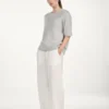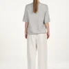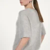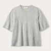 O’TAY Izzie t-shirt i grå. Izzie t-shirt består af 100% ren cashmere, som føles silkeblødt mod huden og giver en luksuriøs følelse. T-shirtens korte ærmer giver et moderne og afslappet udtryk, mens den klassiske runde halsudskæring giver en tidløs elegance.
