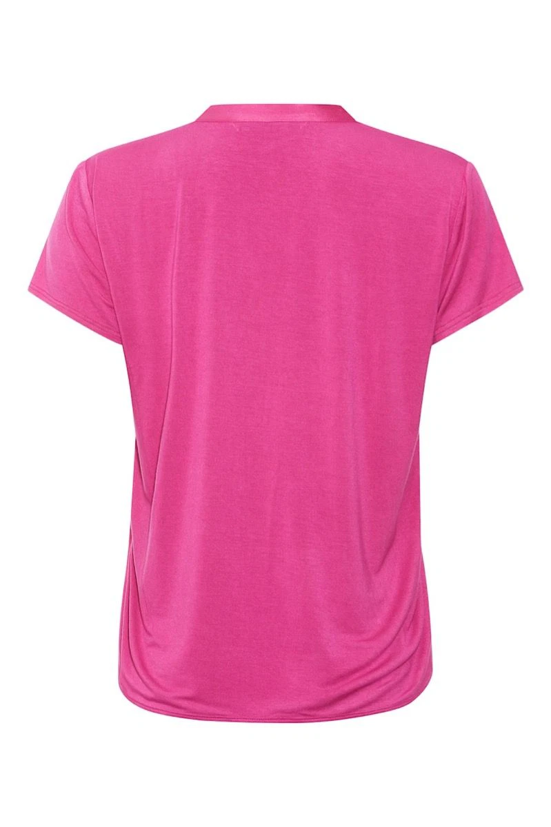 PBO Gerbil bluse- pink, blusen har en v- udskæring med stolpelukning og knapper, silke foran og jersey på ryggen og har korte ærmer. Blusen har regulær fit.