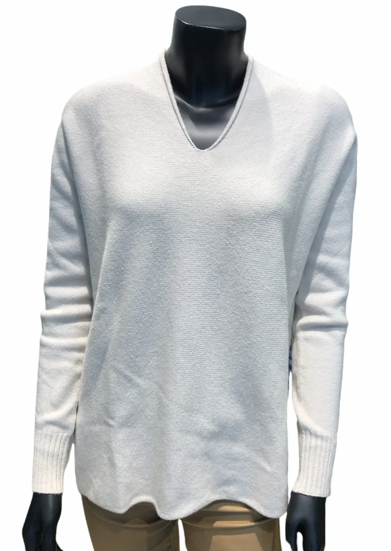 Piro strik i farven Panna en lækker blød kvalitet, strikken er med V-hals , slidser i siden og normal i størrelsen