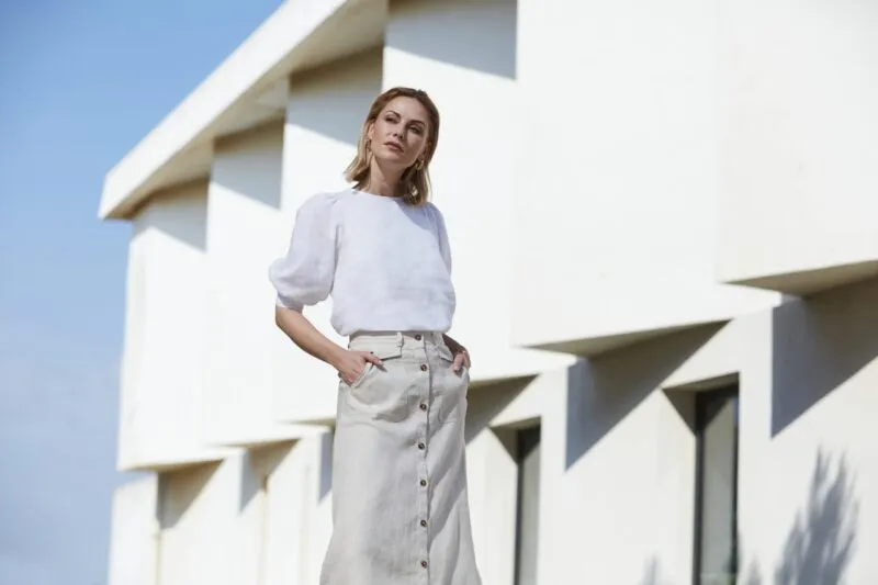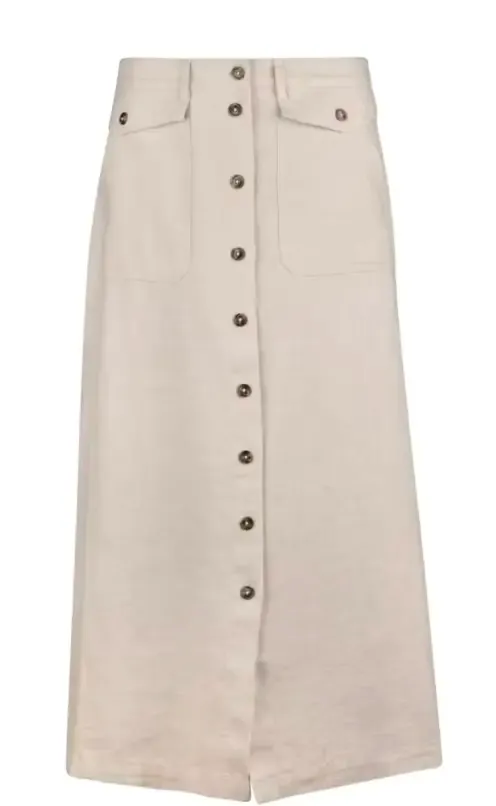 Stenstrøms Heidi Beige cargonederdel i hør, nederdelen har cargolommer og knapper foran og er meget blød og behagelig at have på.