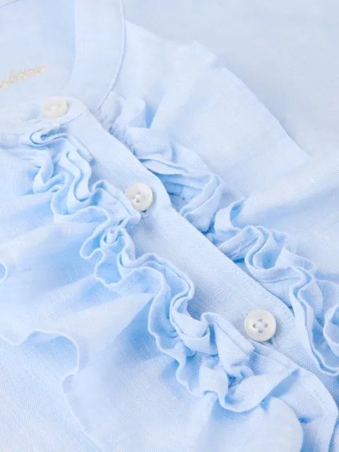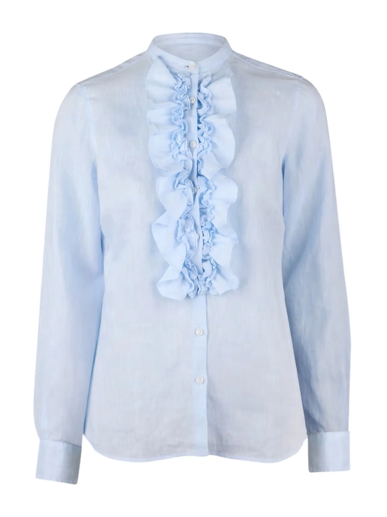 Stenstrøms Hillary hørskjorte i lyseblå. Denne bluse er fremstillet i hør og har en feminin pasform. Blusen har flæser foran, enkelte manchetter og en kinakrave.