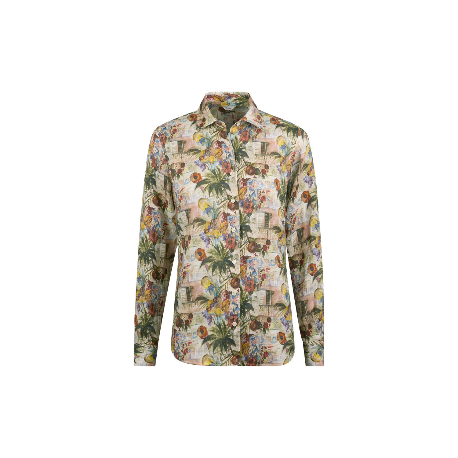 Stenstrøms Sofie skjorte. Denne mønstrede skjorte er fremstillet i hør og har en feminin pasform. Skjorten har perlemorsknapper, enkelte manchetter og en klassisk krave.